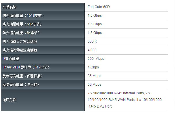 具有7个GbE交换端口,1个DMZ GbE端口和2个WAN GbE端口,可提供1.5 Gbps的防火墙吞吐量
